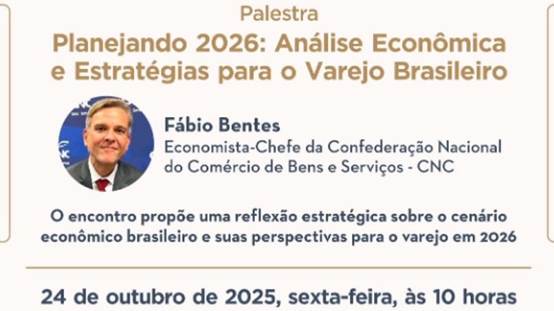 O economista-chefe da CNC (Confederação Nacional do Comércio de Bens e Serviços), Fábio Bentes, é o convidado da reunião conjunta dos Conselhos Empresariais de Varejo, Desenvolvimento Econômico e Mercado de Capitais e Empreendedorismo e da Pequena e Média Empresa, dia 24 de outubro, às 10h.