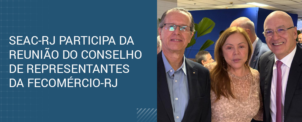 O Seac-RJ e a Aeps-RJ estiveram oficialmente representados em mais um importante momento do sistema Fecomércio-RJ. O presidente do Seac-RJ, Ricardo Garcia, e a presidente da Aeps-RJ, Salete Calaça, participaram da Reunião Ordinária do Conselho de Representantes, realizada em 9 de dezembro de 2025, na sede da instituição, conforme convocação expedida pela Fecomércio-RJ.
