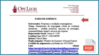 Parecer Jurídico acerca do Tema nº 1.370 da Repercussão Geral do Supremo Tribunal Federal, julgado no Recurso Extraordinário nº 1.520.468/PR, que trata do afastamento de empregada vítima de violência doméstica em razão de medida protetiva prevista na Lei nº 11.340/2006 (Lei Maria da Penha);