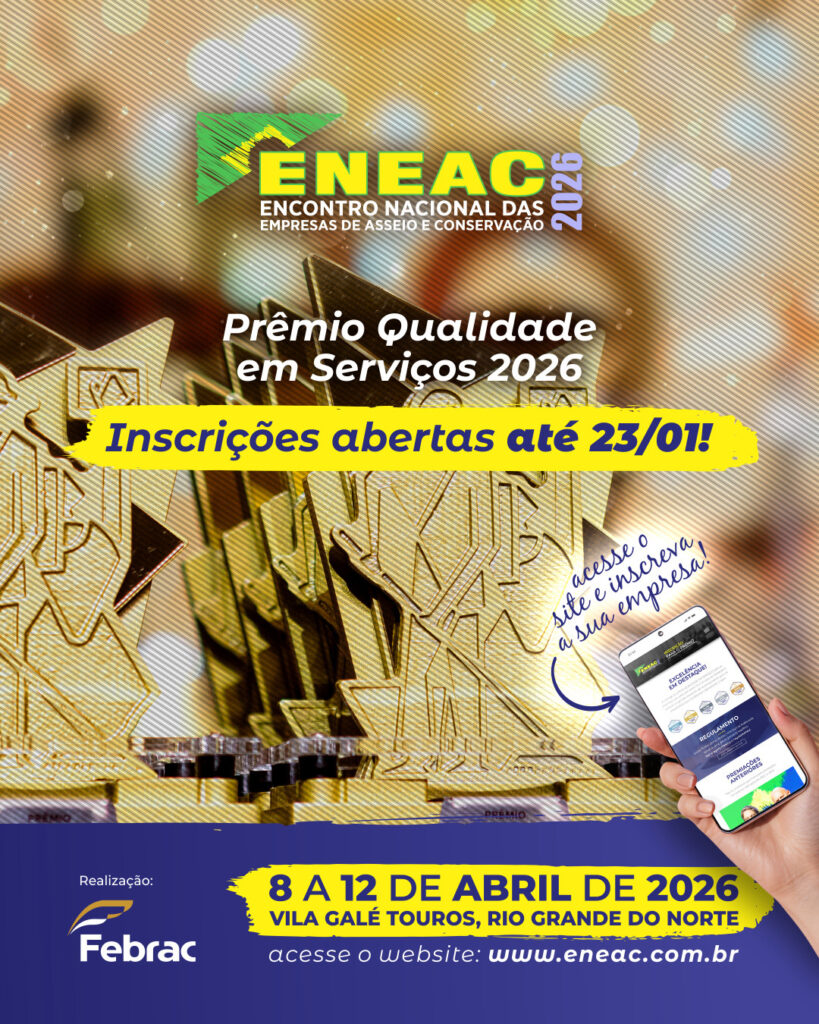 Nesta sexta-feira, 23 de janeiro, termina o prazo das inscrições para o Prêmio Qualidade em Serviços, que reconhece a excelência das empresas de asseio e conservação em todo o país.