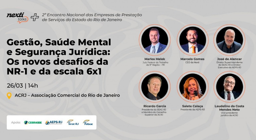 Para aprofundar essa discussão sobre os impactos jurídicos da NR-1 nas empresas, o 2º Encontro Nacional das Empresas de Prestação de Serviços do Estado do Rio de Janeiro e o Nexti Talks reuniram forças para promover um debate de alto nível sobre os novos desafios da gestão empresarial.